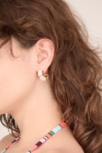 The Lizzie Fortunato Zellige Hoops features the unique details you love from this designer. These hoops are crafted in gold-plated brass with a luminous mother-of-pearl stone inlay. FIT DETAILS - Hoops - Gold-plated brass, mother-of-pearl - Drop: 1"