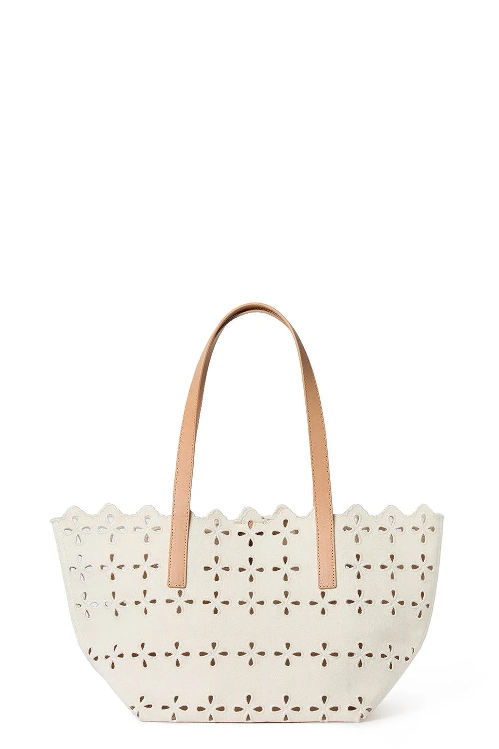 DETAILS AND INSIGHT Loeffler Randall easton tote in natural/honey. Fits Iphone 16 Pro Max 100% Cotton Top W: 16.875" X D:7.5 " X H: 9.5" Made In China Style EASTON-ECV-NATHN