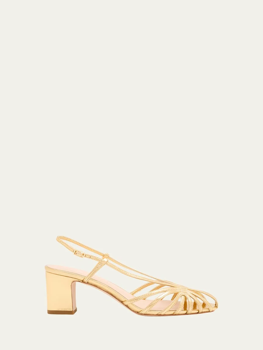 65mm Priscilla Metallic Leather Lattice Mid-Heel Sandals