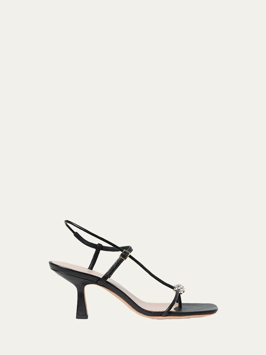 70mm Triana Strappy Crystal Leather Mid-Heel Sandals
