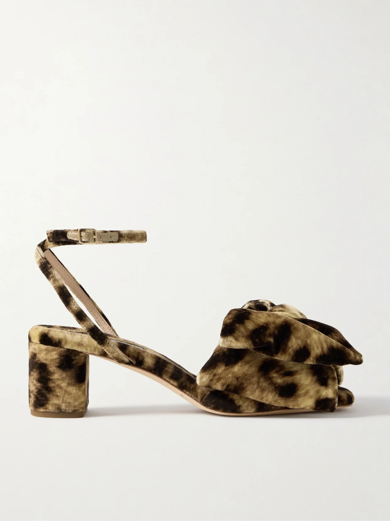 Loeffler Randall's playful 'Carmen' sandals are designed for parties. They're made from leopard-print velvet topped with dramatic bows and rest on 55mm block heels, making them equally comfortable and glamorous.