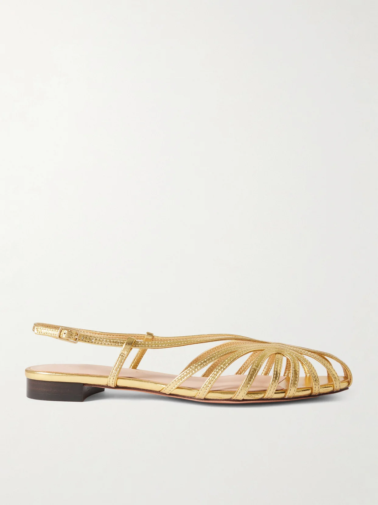 Loeffler Randall's 'Devon' sandals have a spliced, lattice-like design that frames your foot in such a chic way. They're made from gleaming gold leather and have slight heels and tonal buckles to adjust the fit.