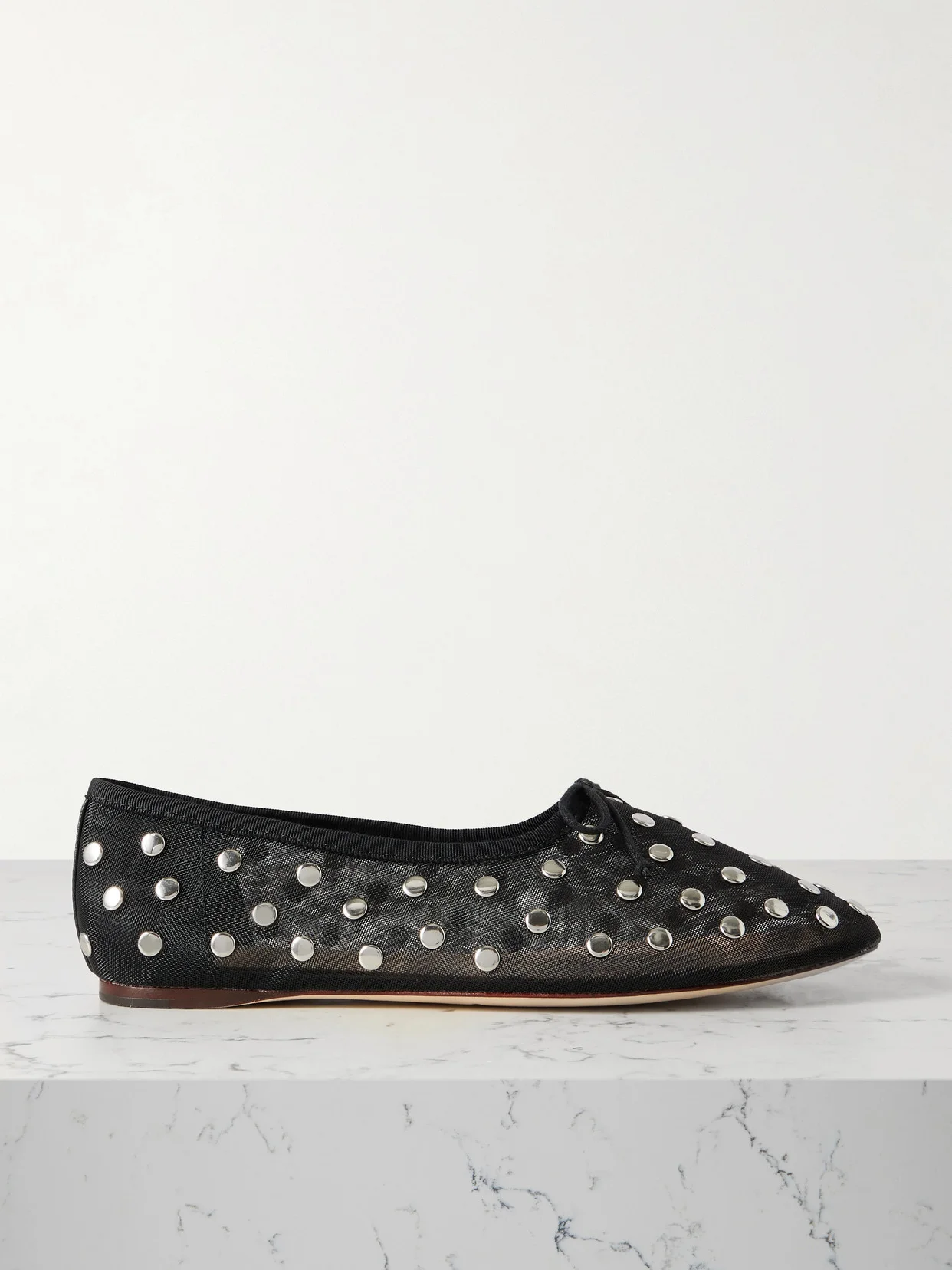 Loeffler Randall's 'Landon' ballet flats are covered with mirrored silver-tone studs, offering a fresh take on sought-after mesh styles. They're handcrafted with softly padded leather footbeds and topped with dainty bows.