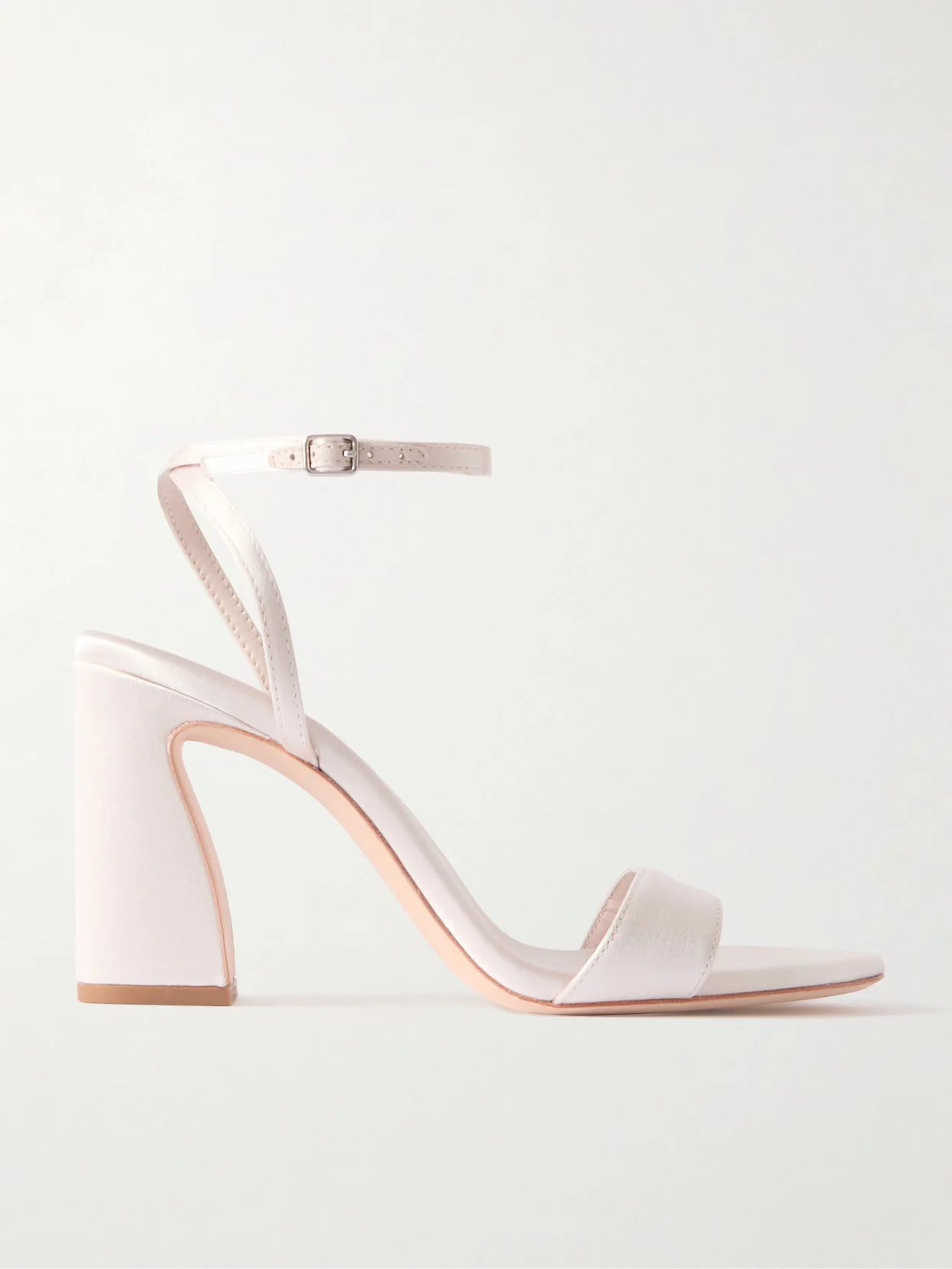 Loeffler Randall's 'Malia' sandals are an elegant choice for your wedding day. Crafted from cream satin, they're set on 90mm curved block heels and have adjustable ankle straps to support your every step, from walking down the aisle to your first dance.
