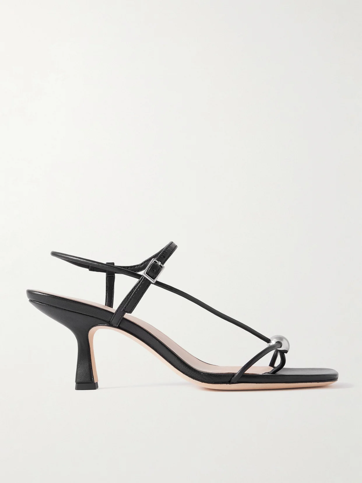 Loeffler Randall perfects the art of understatement, using subtle embellishments to elevate its designs. These square-toe 'Triana' sandals are made from black leather and feature silver-tone spheres threaded through the slim straps. They have 70mm flared heels.