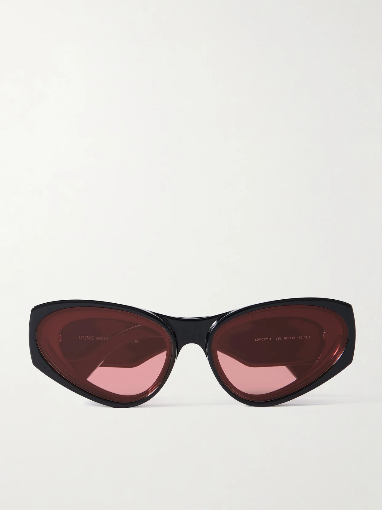 LOEWE Eyewear's sunglasses are designed in collaboration with Paula's Ibiza, evoking the sunny spirit of the Balearics. They have acetate cat-eye frames, pretty pink lenses and gold-tone logos on the wide arms.