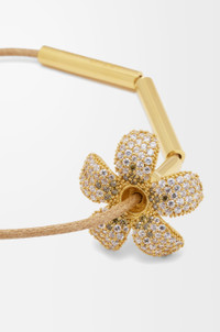 Flor necklace featuring a crystal pave flower with a gold-plated sterling silver stem on an adjustable light cotton cord fastened with an Anagram pebble. Details - Colour : White/Gold - Metallic colour : Gold - Main material : Sterling Silver/Crystals - Weight : 0.0147 kg - Model ID : JJ03241X07 - CIL : - 0011053683 - Made in : Italy