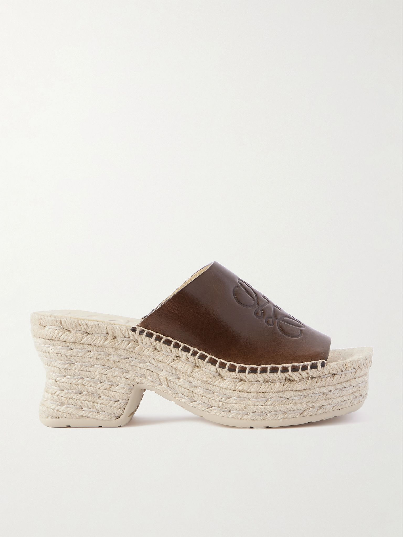 Loewe and Paula's Ibiza's collections are inspired by the carefree spirit of the island's hotspot boutique, which thrived from the '70s to '00s. These sandals are made from smooth logo-debossed leather and rest on jute platform wedges. Size & Fit - Fits true to size, take your normal size - Only available in full sizes, go up to the nearest whole size if you take a half size - Italian sizing Details & Care - Brown leather, jute - Slip on
