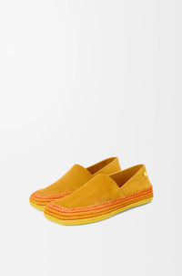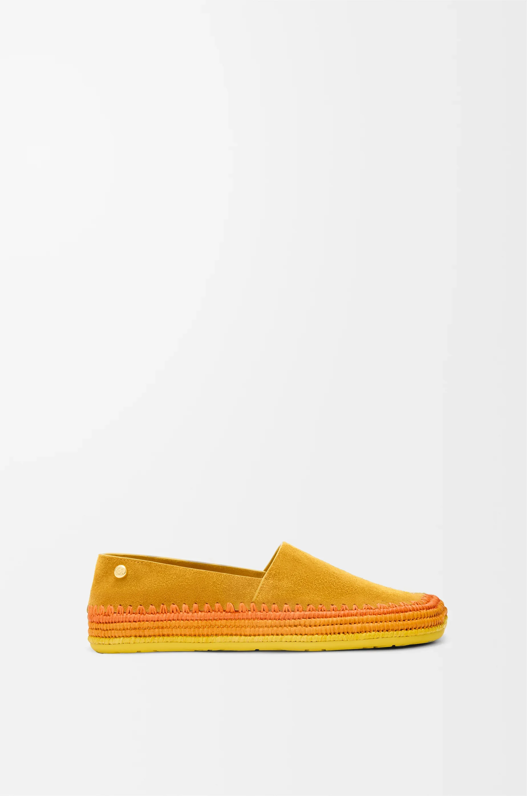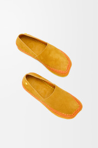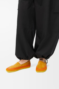 Slipper in suede featuring a hand-crafted raffia embroidery and a signature petal toe shape. - 5mm heel - Anagram Pebble at the side - Extra-padded insole - Anagram-embossed rubber outsole - Suede bonding Colour: Orange Main material: Suede/Raffia Weight: 0.4 kg Made in: Spain