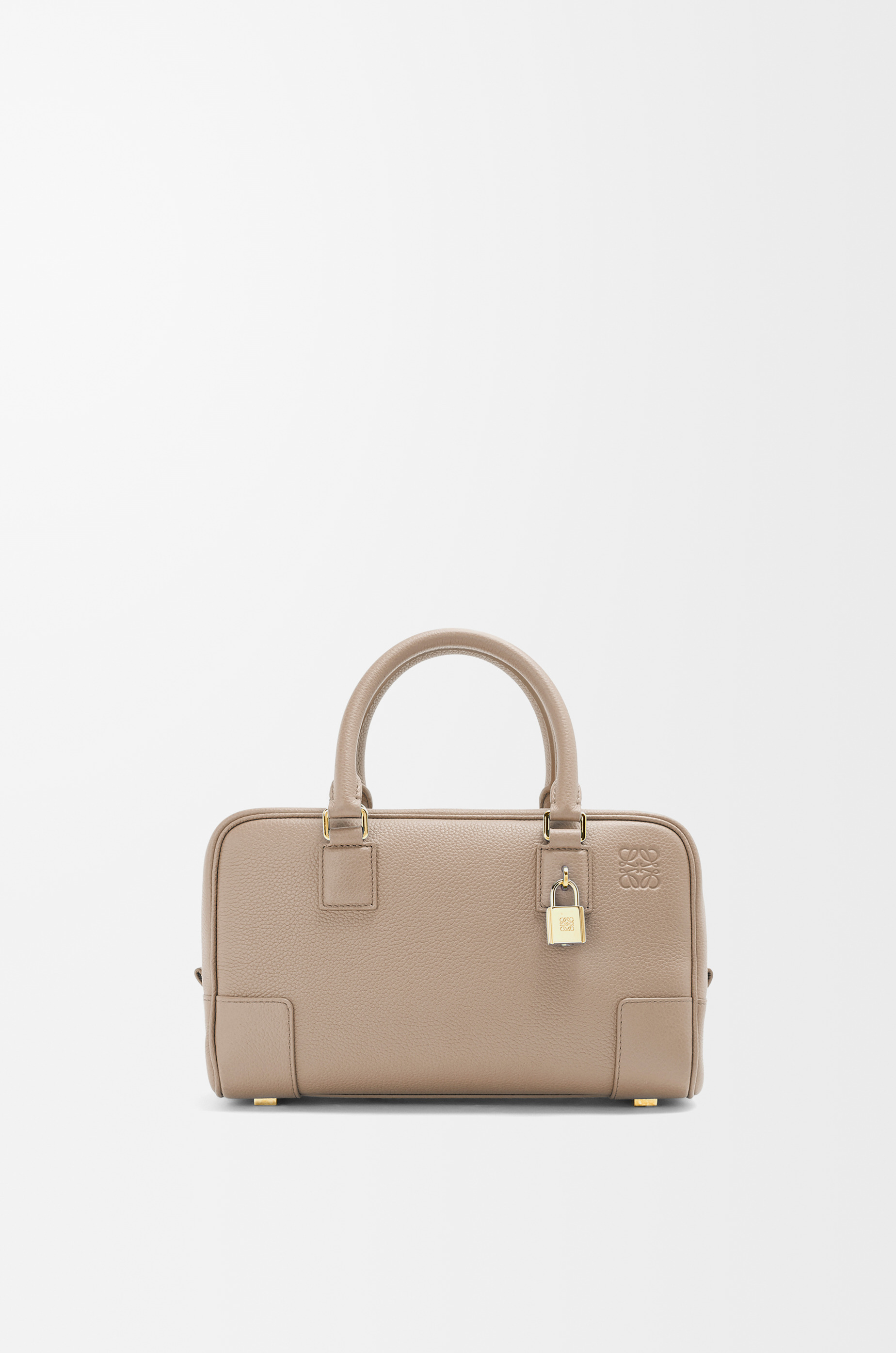 The Amazona displays a classic shape complemented by a signature padlock. This version is crafted in soft grained calfskin. - Shoulder, crossbody or hand carry - Detachable and adjustable strap - Zip closure with calfskin pulls - One internal zipped compartment, one slip pocket, one pocket for padlock key - Protective metal feet on base - Gold suede lining - Embossed Anagram Colour: Sand Metallic colour: Gold Main material: Soft Grained Calf Strap length: 84.5 - 112.5 cm Strap drop: 41 - 54 cm Handle drop: 10 cm Weight: 0.54 kg Height: 15.5 cm Width: 23 cm Depth: 9.7 cm Made in: Spain