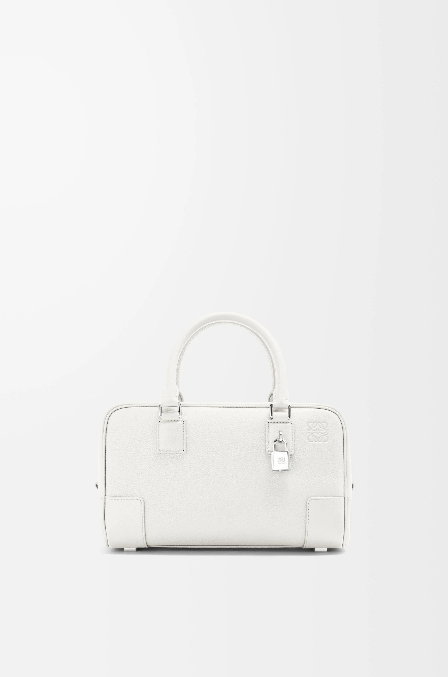 The Amazona is a LOEWE icon originally launched in the 1970s as a top handle soft bag. Now updated with refined proportions and exquisitely crafted details including an Anagram engraved padlock. This version is crafted in soft grained calfskin. - Shoulder, crossbody or top handle carry - Detachable and adjustable strap - Internal zipped compartment and slip pocket with press stud fastening - Mini pocket for padlock key - Calfskin zip pulls - Protective metal feet on base - Customisable with strap and personalised charms - Gold suede lining - Embossed Anagram - Engraved Anagram padlock Details - Colour: Soft White - Metallic colour: Palladium - Main material: Soft Grained Calf - Strap length: 84.5 - 112.5 cm - Handle drop: 10 cm - Weight: 0.54 kg - Height (cm): 15.5 - Width (cm): 23 - Depth (cm): 9.7 - Height (inch): 6.1 - Width (inch): 9.1 - Depth (inch): 3.8 - Model ID: A039N07X02 - CIL: 0010897221 - Made in: Spain