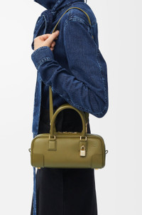 The Amazona is an icon launched in the 1970s, updated with refined proportions and key details including an Anagram engraved padlock. This cropped version is crafted in nappa calfskin. - Shoulder, crossbody or top handle carry - Detachable and adjustable strap - Zip closure with calfskin pulls - One internal zipped compartment, one slip pocket, one pocket for padlock key - Protective metal feet on base - Gold suede lining - Embossed Anagram Details - Colour : Olive - Metallic colour : Gold - Main material : Nappa Calf - Strap length : 85 - 112 cm - Strap Drop : 40 - 54 cm - Handle drop : 10 cm - Weight : 0.5 kg - Height (cm) : 11 - Width (cm) : 23 - Depth (cm) : 10 - Height (inch) : 4.3 - Width (inch) : 9.1 - Depth (inch) : 3.9 - Model ID : A039N23X01 - CIL : - 0011110756 - Made in : Spain