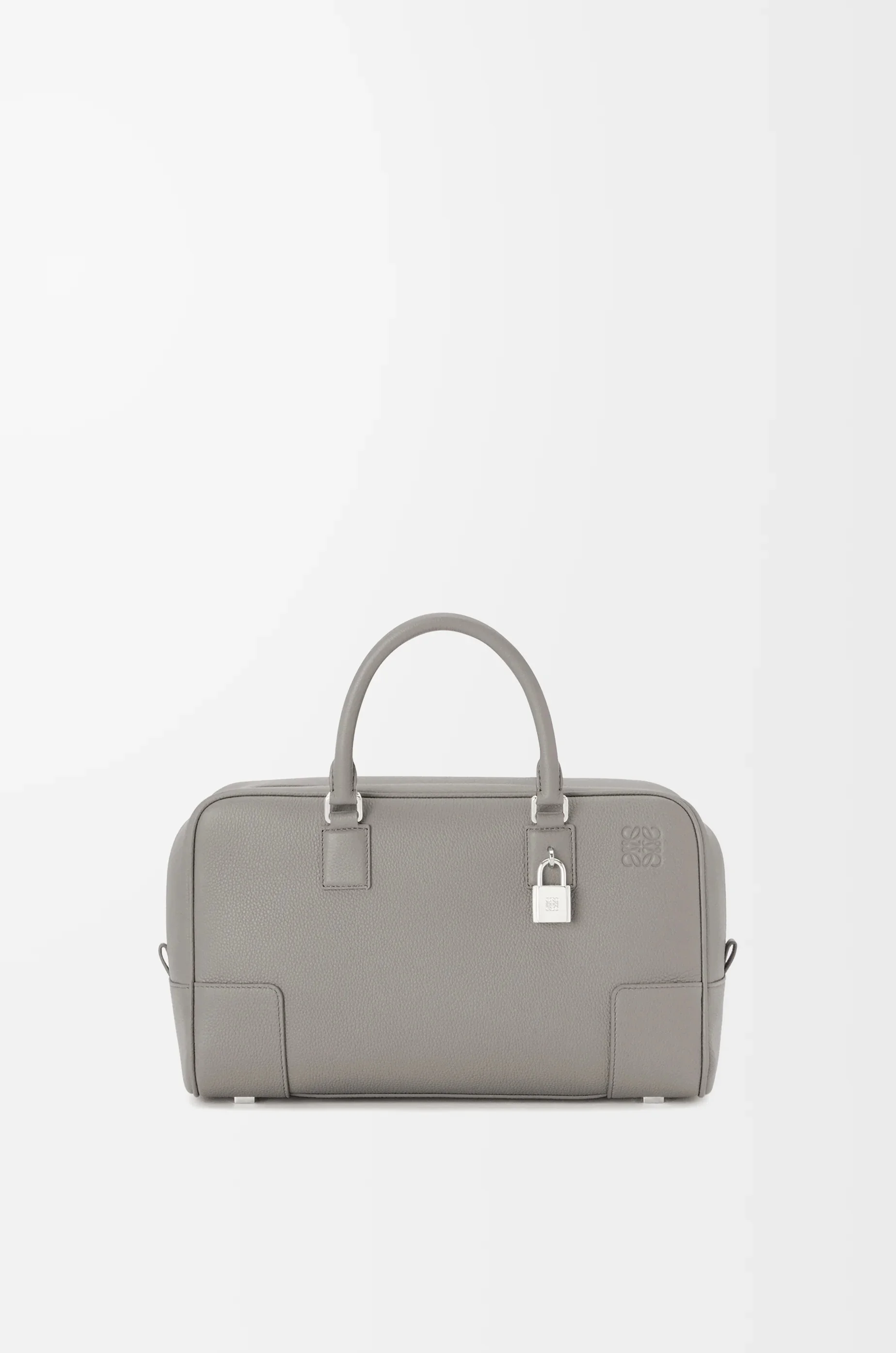 The Amazona is a LOEWE icon originally launched in the 1970s as a top handle soft bag. Now updated with refined proportions and exquisitely crafted details including an Anagram engraved padlock. This version is crafted in soft grained calfskin. - Shoulder, crossbody or top handle carry - Detachable and adjustable strap - Double zip closure - Calfskin zip pulls - Internal zipped compartment and slip pocket with press stud fastening - Mini pocket for padlock key - Protective metal feet on base - Customisable with strap and personalised charms - Gold suede lining - Embossed Anagram Details - Colour: Pearl Grey - Metallic colour: Palladium - Main material: Soft Grained Calf - Strap length: 85 - 113 cm - Handle drop: 10 cm - Weight: 0.69 kg - Height (cm): 18 - Width (cm): 28 - Depth (cm): 11 - Height (inch): 7.1 - Width (inch): 11 - Depth (inch): 4.3 - Model ID: A039N08X08 - CIL: 0010797348 - Made in: Spain
