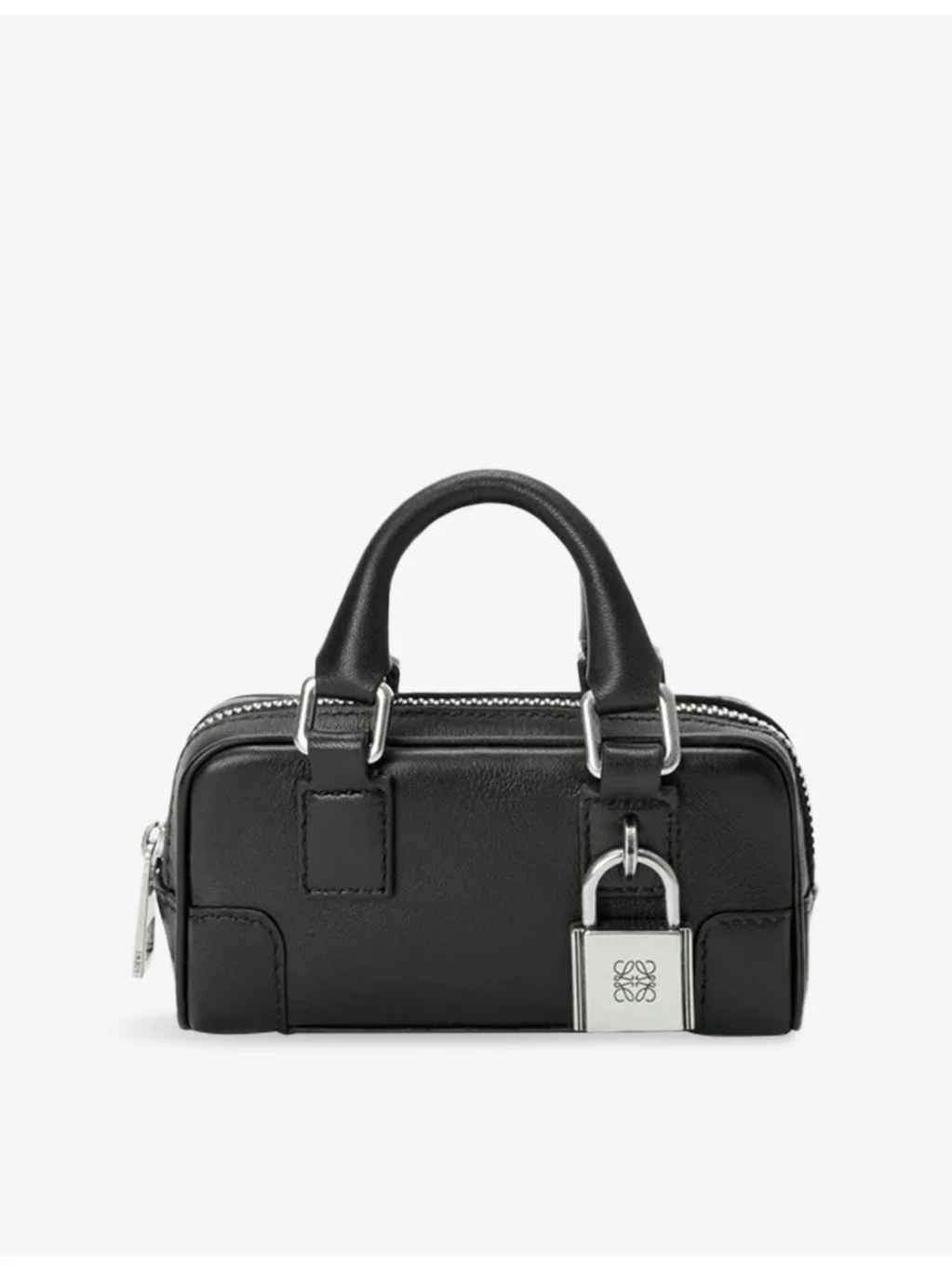 PRODUCT DETAILS - Loewe leather shoulder bag - 100% calf leather - Zip fastening - Structured shape, double top handles, detachable shoulder straps, signature Anagram-engraved padlock, one main compartment, silver-toned hardware - Height 5.5cm, width 11.5cm, depth 3.5cm - Specialist leather clean - Made in Spain Ref: R04567247