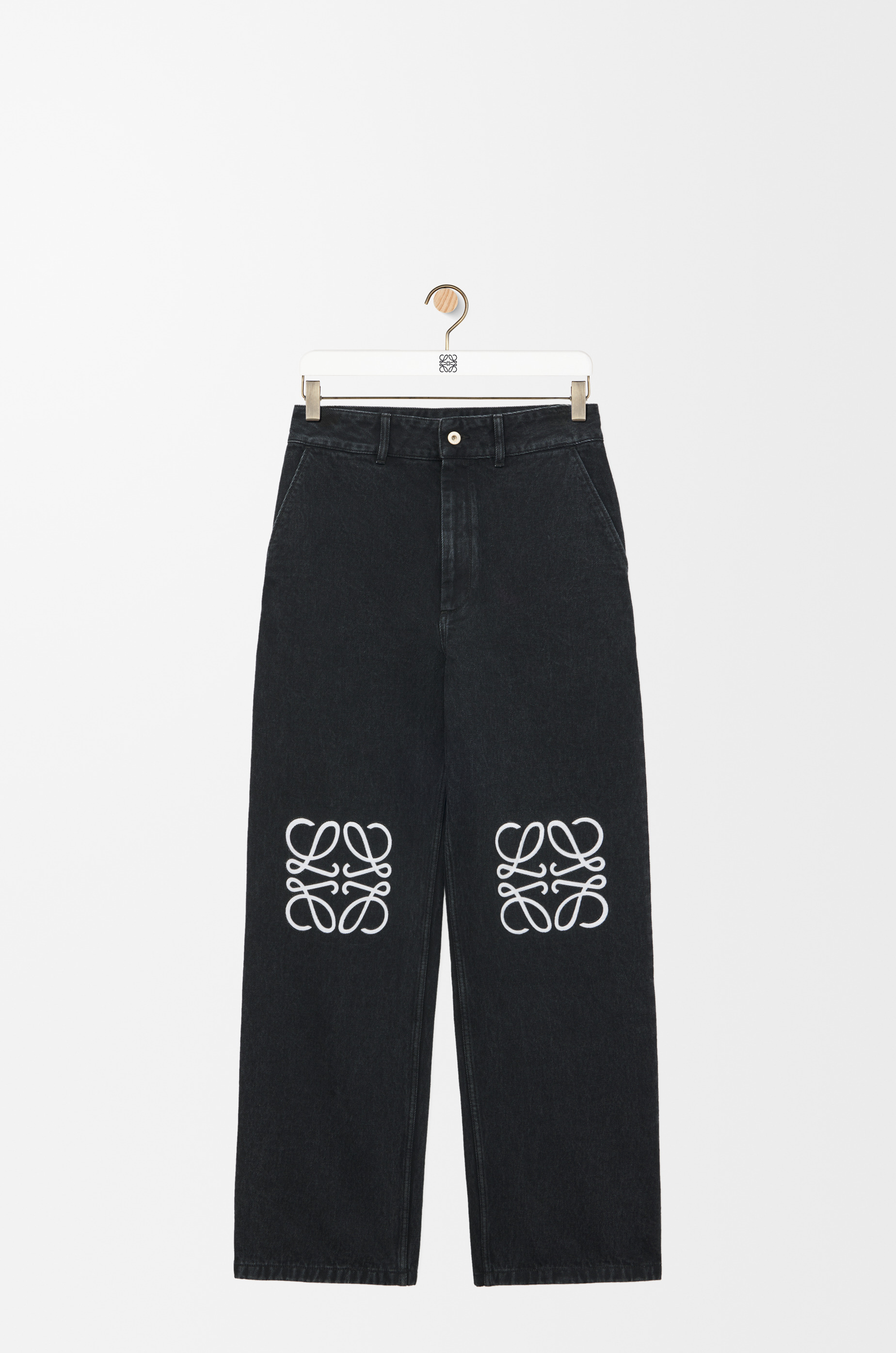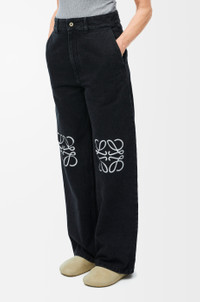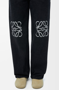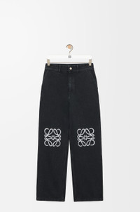 Jeans in medium-weight washed cotton denim featuring contrast Anagram cut-outs at the knees. - Relaxed fit, regular length - Low waist, loose leg - Concealed zip fly - Slash pockets, rear patch pockets - LOEWE embossed leather patch placed at the back Details - Colour : Black - Main material : Cotton - Weight : 0.7 kg - Model ID : S359Y11XBU - Made in : Italy