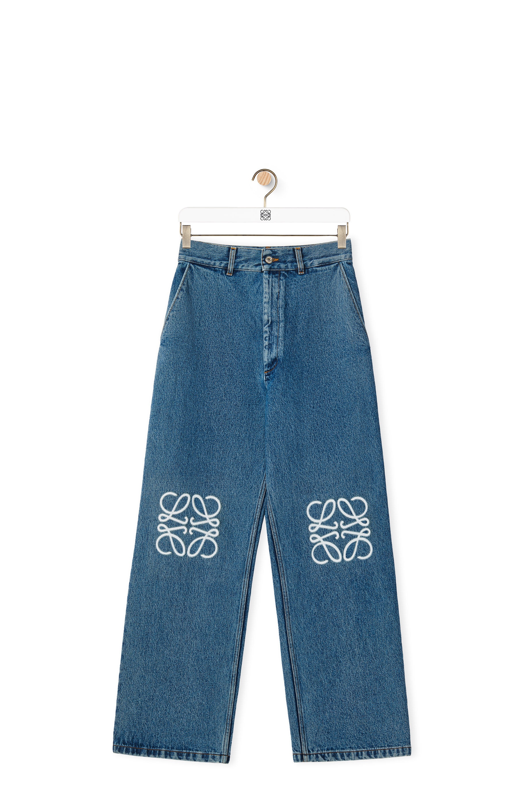 Anagram baggy jeans crafted in medium-weight washed cotton denim. - Relaxed fit - Regular length - Low waist - Loose leg - Contrast Anagram cut-out at the front - Belt loops - Concealed zip fastening - Slash pockets - Low rear patch pockets at the back - Contrast tobacco topstitching - LOEWE embossed leather patch placed at the back Details - Colour: Jeans Blue - Main material: Cotton - Weight: 0.8 kg - Model ID: S359Y11X43 - Made in: Italy