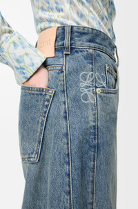 Jeans in medium-weight washed cotton denim featuring a balloon silhouette with darts at the knees and a bleached Anagram placed at the hip. - Regular fit, regular length - Mid waist, loose leg - Concealed zip fastening - Five pocket style - LOEWE embossed suede patch placed at the back Details - Colour : Washed Denim - Main material : Cotton - Weight : 1.0 kg - Model ID : S359Y11XCM - Made in : Italy
