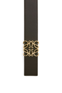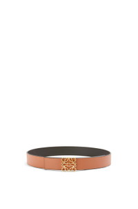 Reversible belt in smooth calfskin with a LOEWE Anagram buckle. - 3.5cm wide Details - Colour: Tan/Black/Gold - Metallic colour: Gold - Main material: Smooth Calf/Brass - Weight : 0.11 kg - Height (cm): 3.5 - Width (cm): 109.5 - Depth (cm): 0.3 - Height (inch): 1.4 - Width (inch): 43.1 - Depth (inch): 0.1 - Model ID: E619Z20X03 - Made in: Spain