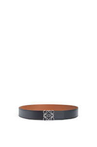 Reversible belt in smooth calfskin with a palladium LOEWE Anagram buckle. - 3.2cm wide Details - Colour: Black/Tan/Palladium - Metallic colour: Palladium - Main material: Smooth Calf/Brass - Weight : 0.1 kg - Height (cm): 3.2 - Width (cm): 100 - Depth (cm): 0.3 - Height (inch): 1.3 - Width (inch): 39.4 - Depth (inch): 0.1 - Model ID: 515.02.011 - Made in: Spain