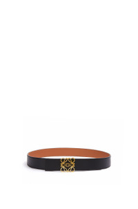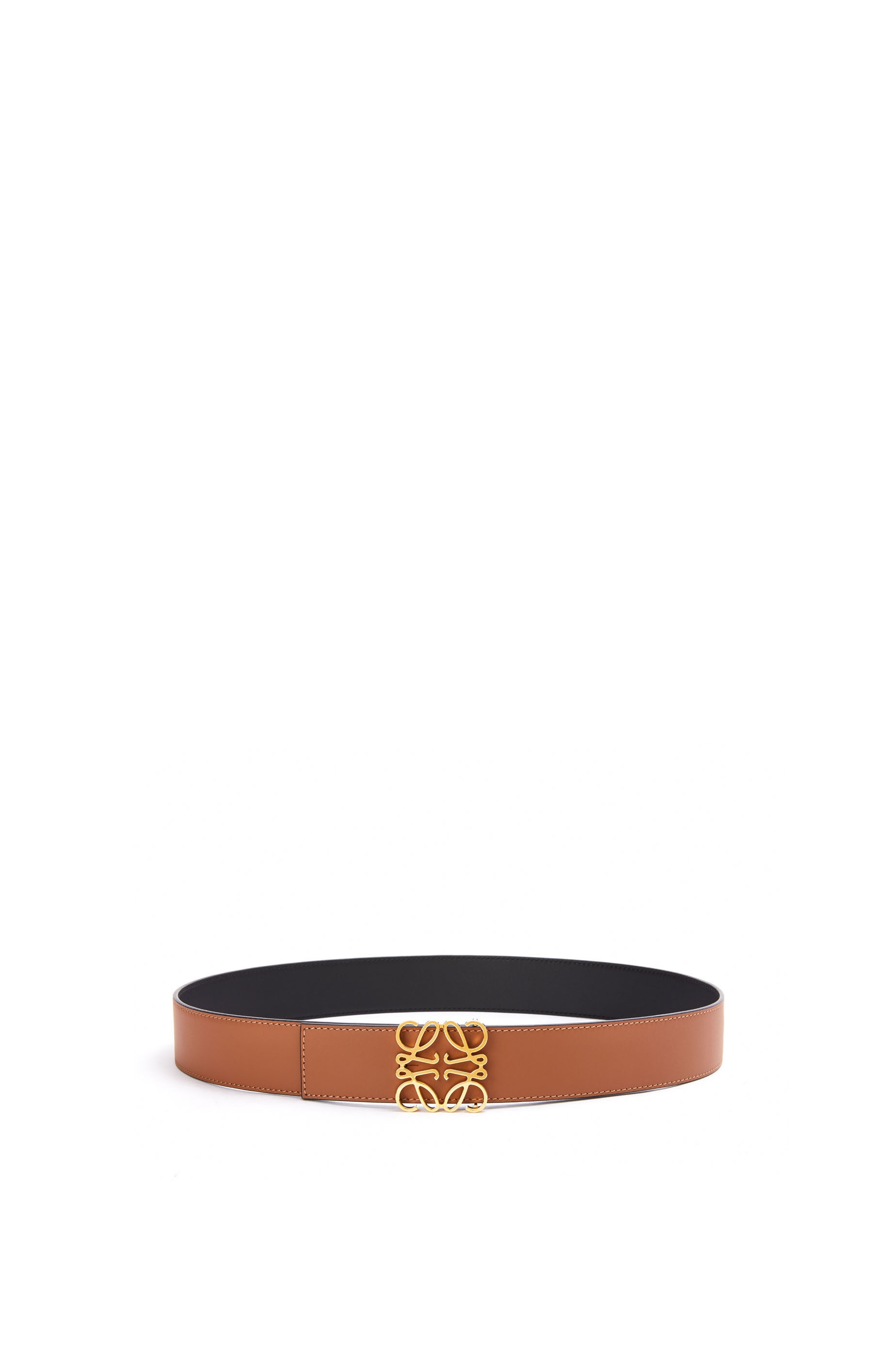 Reversible belt in smooth calfskin with a LOEWE Anagram buckle. - 4cm wide Details - Colour: Tan/Black/Gold - Metallic colour: Gold - Main material: Smooth Calf/Brass - Weight : 0.133 kg - Height (cm): 4 - Width (cm): 107 - Depth (cm): 0.3 - Height (inch): 1.6 - Width (inch): 42.1 - Depth (inch): 0.1 - Model ID: 515.01.010 - Made in: Spain