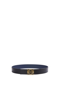 Reversible belt in smooth calfskin with a LOEWE Anagram buckle. - 4cm wide Details - Colour: Black/Navy/Gold - Metallic colour: Gold - Main material: Smooth Calf/Brass - Weight : 0.133 kg - Height (cm): 4 - Width (cm): 107 - Depth (cm): 0.3 - Height (inch): 1.6 - Width (inch): 42.1 - Depth (inch): 0.1 - Model ID: 515.01.010 - Made in: Spain