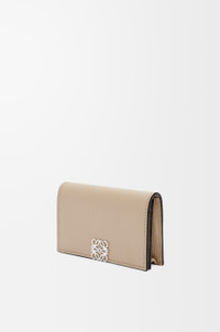 Business cardholder in pebble grained calfskin. - One main compartment, one card slot - Snap button closure - Calfskin lining - Gold or silver-finish metal Anagram Colour: Sand Metallic colour: Palladium Main material: Pebble Grain Calf Weight: 0.05 kg Height: 7 cm Width: 10.8 cm Depth: 2 cm Made in: Spain