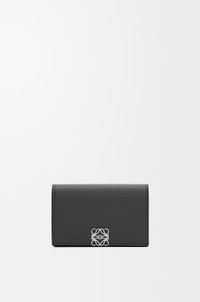 Business cardholder in pebble grained calfskin. - One main compartment, one card slot - Snap button closure - Calfskin lining - Silver-finish metal Anagram Colour: Black Metallic colour: Palladium Main material: Pebble Grain Calf Weight: 0.05 kg Height: 7 cm Width: 10.8 cm Depth: 2 cm Made in: Spain