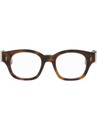 Square tortoiseshell acetate-frame optical glasses. · Integrated nose pads · Hardware at face · Logo hardware at temples · Gold-tone hardware · Includes pouch · Size: 50.20 140 Supplier color: Dark Havana Acetate. Made in Italy 252677F004006