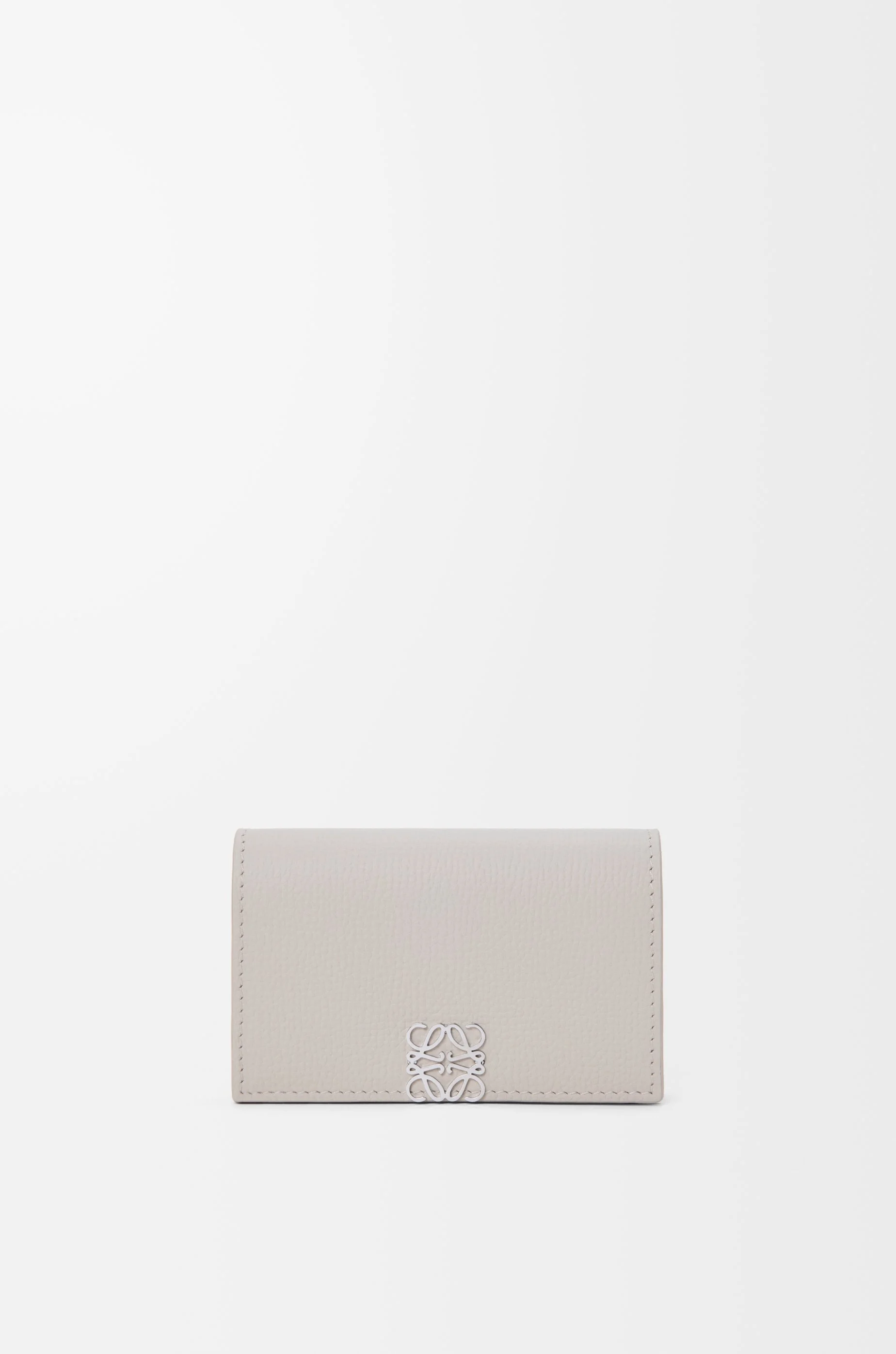 Business cardholder in pebble grained calfskin. - One main compartment, one card slot - Snap button closure - Calfskin lining - Silver-finish metal Anagram Colour: Light Ghost Metallic colour: Palladium Main material: Pebble Grain Calf Weight: 0.05 kg Height: 7 cm Width: 10.8 cm Depth: 2 cm Made in: Spain