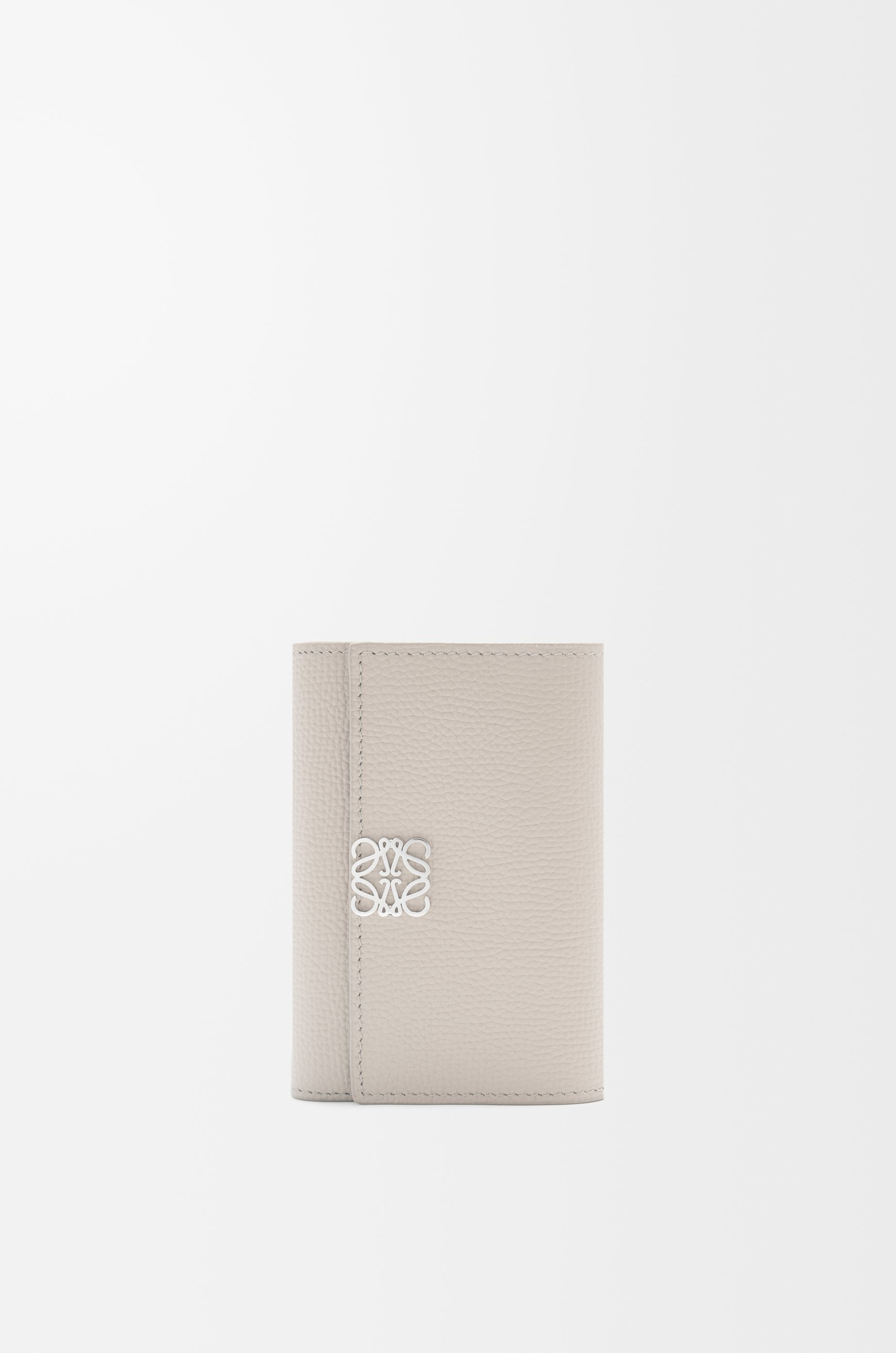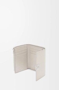 Wallet in pebble grained calfskin. - Six card slots, two small pockets, one large pocket - One zipped coin compartment - Snap button closure - Calfskin lining - Silver-finish metal Anagram Colour: Light Ghost Metallic colour: Palladium Main material: Pebble Grain Calf Weight: 0.08 kg Height: 8.2 cm Width: 11.8 cm Depth: 3 cm Made in: Spain