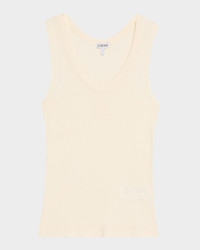Loewe ribknit tank top with embroidered Anagram logo on chest Scoop neckline Sleeveless Relaxed fit Pullover style Silk/polyester Made in Portugal