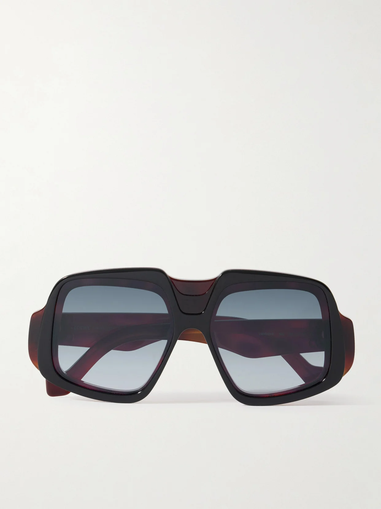 LOEWE Eyewear's sunglasses have futuristic oversized frames inspired by aviator styles. They're made from tortoiseshell acetate and detailed with tonal 'Anagram' emblems at the arms.