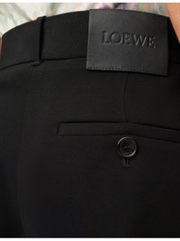 PRODUCT DETAILS - Loewe strech-woven shorts - 72% viscose, 20% cotton, 5% leather, 3% elastane - Zip fastening - Regular fit, mid rise, knee length, side seam pockets, buttoned rear welt pocket, logo embossed leather patch at back, pressed creases at the front and back rib knit cuffs - Dry clean - True to size - Midweight, slight stretch Ref: R04493178