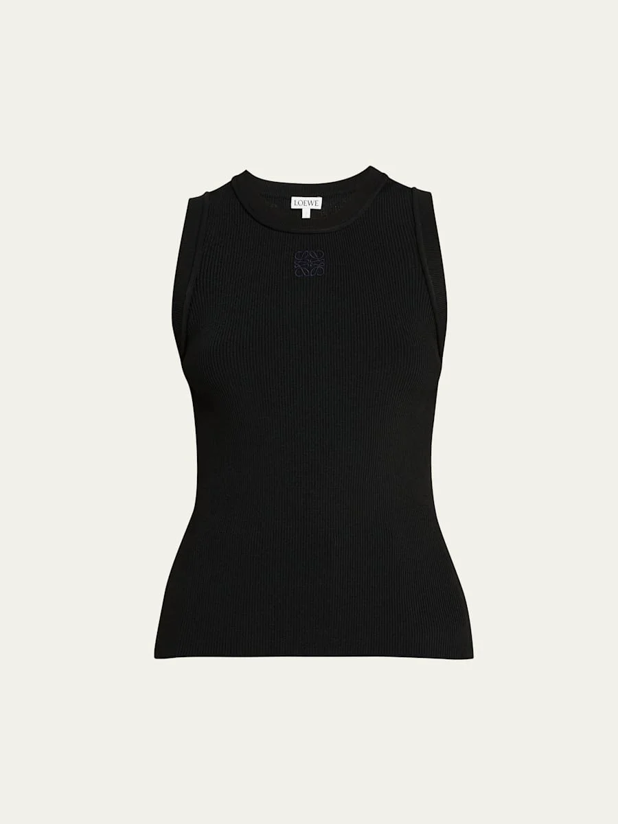 Loewe tank top is crafted of a ribbed knit featuring a siganture anagram embroidered chest Crew neckline Sleeveless Slim fit Pullover style Viscose/polyester/nylon/polyamide Made in Italy