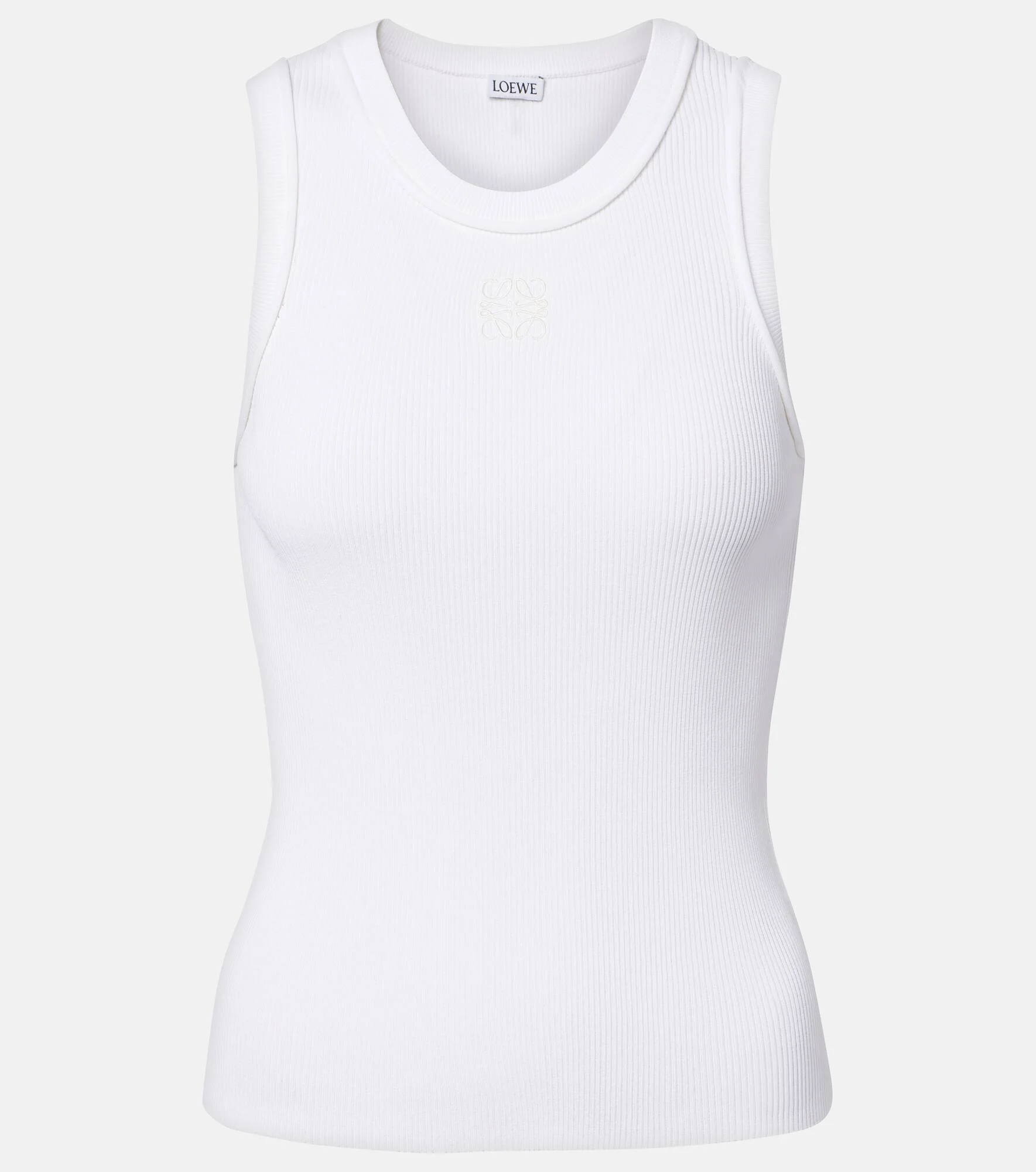 This Loewe tank top is a timeless piece for effortless styling. Designed with a scoop neckline and a ribbed-knit finish, the garment boasts an embroidered Anagram logo, the iconic quadruple-L insignia that now lends instant recognition to the label. Product Details - Material: 92% viscose, 4% polyamide, 4% polyester - Care instructions: dry clean - Made in Italy - Color: white - Designer color name: White - Item color: white - Embroidery: 100% polyester - Item number: P01118168 Size & Fit - True to size - Fitted - Stretchy fabric - Falls to the hip - The model seen in the picture is 178cm-5'10" and wearing a size XS