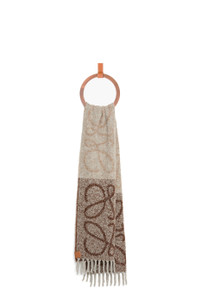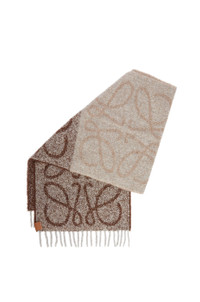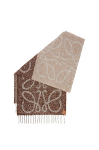 Scarf crafted in bouclé alpaca and wool blend. - 45cm x 200cm - Two-tone Anagram jacquard - Chunky fringed edges - Anagram embossed leather tab Details - Colour: Brown Nut - Main material: Alpaca/Wool/Calf - Weight: 0.48 kg - Height (cm): 184 - Width (cm): 47 - Height (inch): 72.4 - Width (inch): 18.5 - Model ID: F811257X79 - CIL: 0010976462 - Made in: Italy