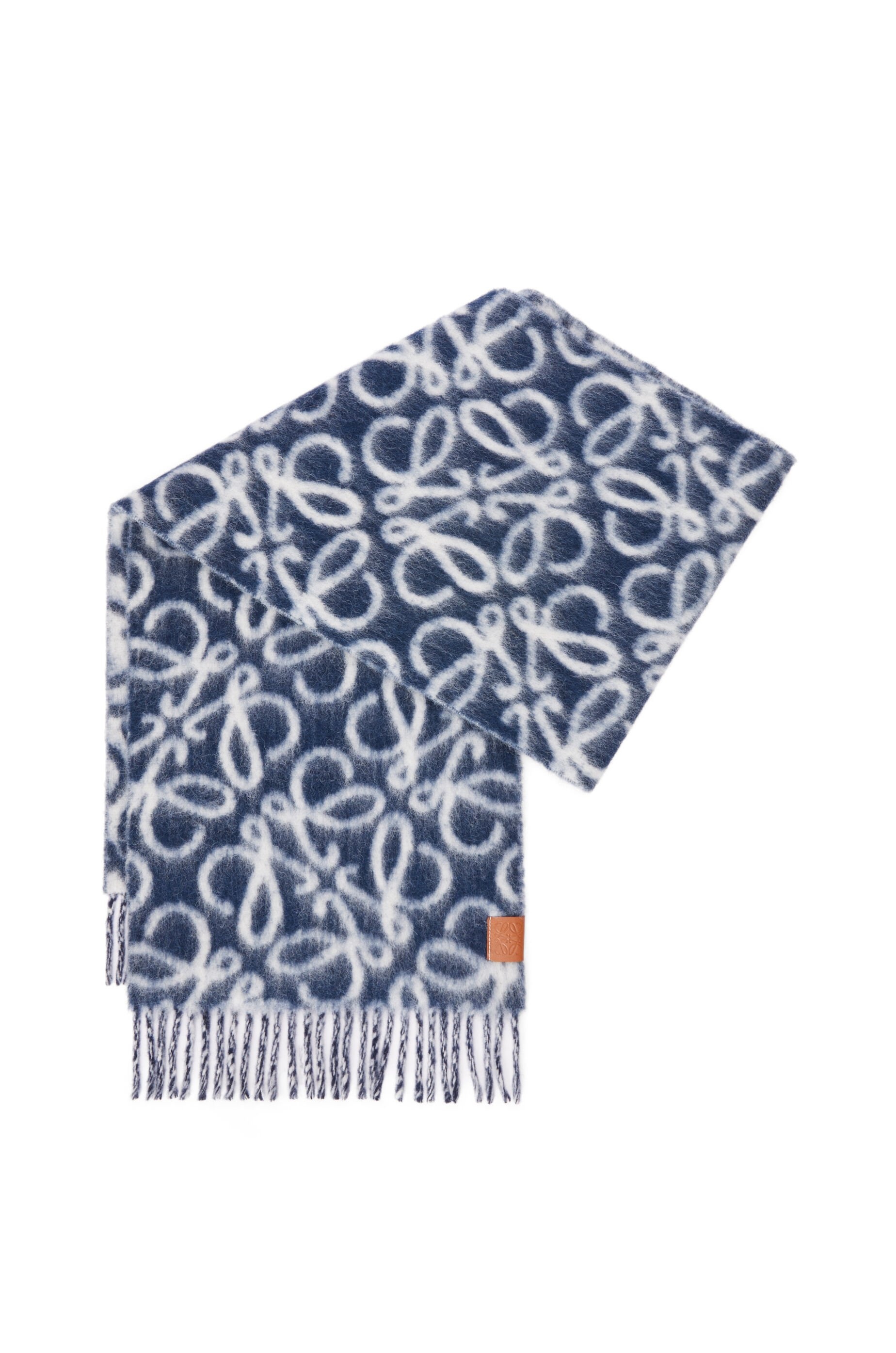 Scarf crafted in double face alpaca and wool blend. - 37cm x 200cm - Allover Anagram pattern - Fringed edges - Anagram leather tab on the side edge Details - Colour : Navy/White - Main material : Alpaca/Wool/Calf - Weight : 0.31 kg - Height (cm) : 200 - Width (cm) : 37 - Height (inch) : 78.7 - Width (inch) : 14.6 - Model ID : F811257X23 - CIL : - 0011082104 - Made in : Italy