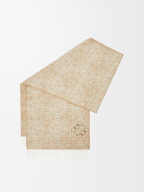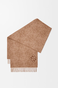 Scarf in double face wool and cashmere jacquard featuring a two-tone Anagram pattern. - 38cm x 180cm - Fringed edges - Anagram tufting embroidery placed at the corner Colour: Mocha Main material: Wool/cashmere Weight: 0.15 kg Height: 180 cm Width: 38 cm Made in: United Kingdom