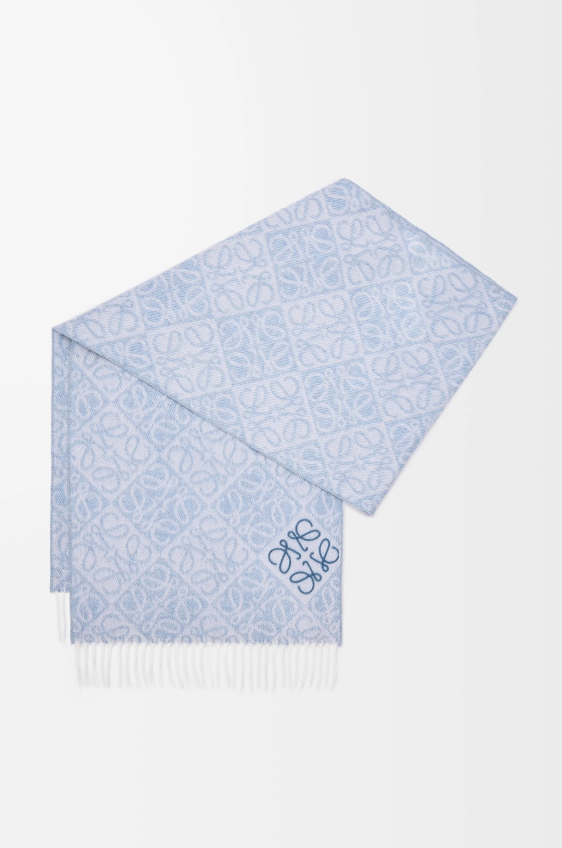 Scarf in double face wool and cashmere jacquard featuring a two-tone Anagram pattern. - 38cm x 180cm - Fringed edges - Anagram tufting embroidery placed at the corner Colour: Light Blue Main material: Wool/Cashmere Weight: 0.15 kg Height: 180 cm Width: 38 cm Made in: United Kingdom