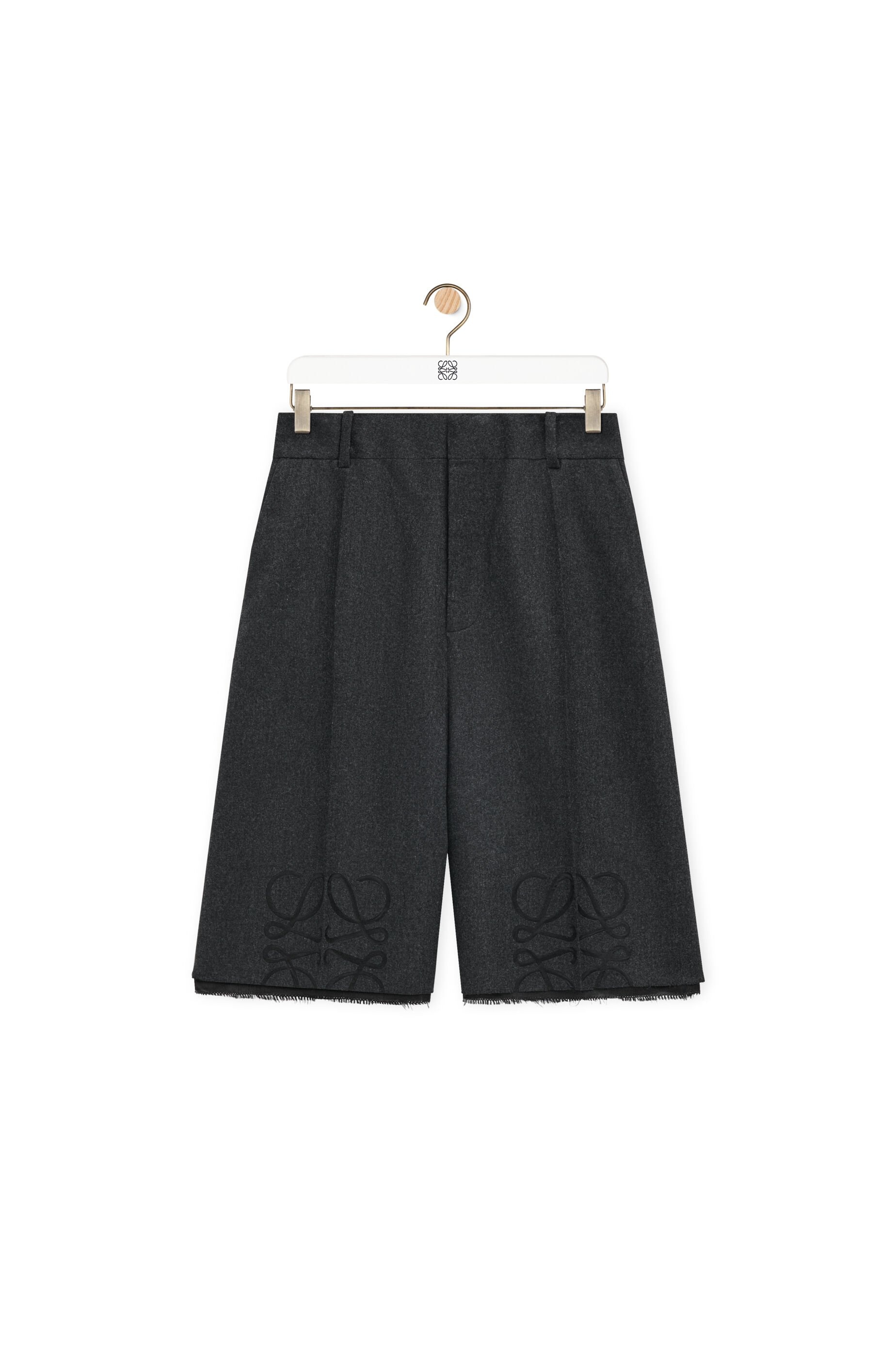 Shorts in medium-weight wool and cashmere flannel tailoring featuring slashed Anagram cut-outs at the knees and a frayed hem with visible lining. - Regular fit, knee length - Mid waist - Concealed zip fastening - Slash pockets, rear welt pocket - Fully lined Details - Colour : Charcoal Melange - Main material : Wool/Cashmere - Weight : 0.4 kg - Model ID : S359Y1AX15 - Made in : Italy