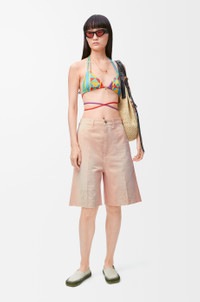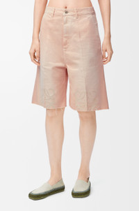 Shorts in lightweight washed cotton twill featuring Anagram cut-outs at the knees and a raw hem. - Regular fit, knee length - Low waist - Button fastening, concealed button fly - Slash pockets, rear patch pockets - LOEWE embossed leather patch placed at the back Colour: Light Pink Main material: Cotton Weight: 0.7 kg Made in: Italy