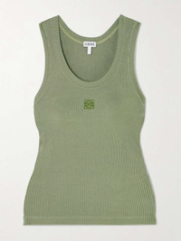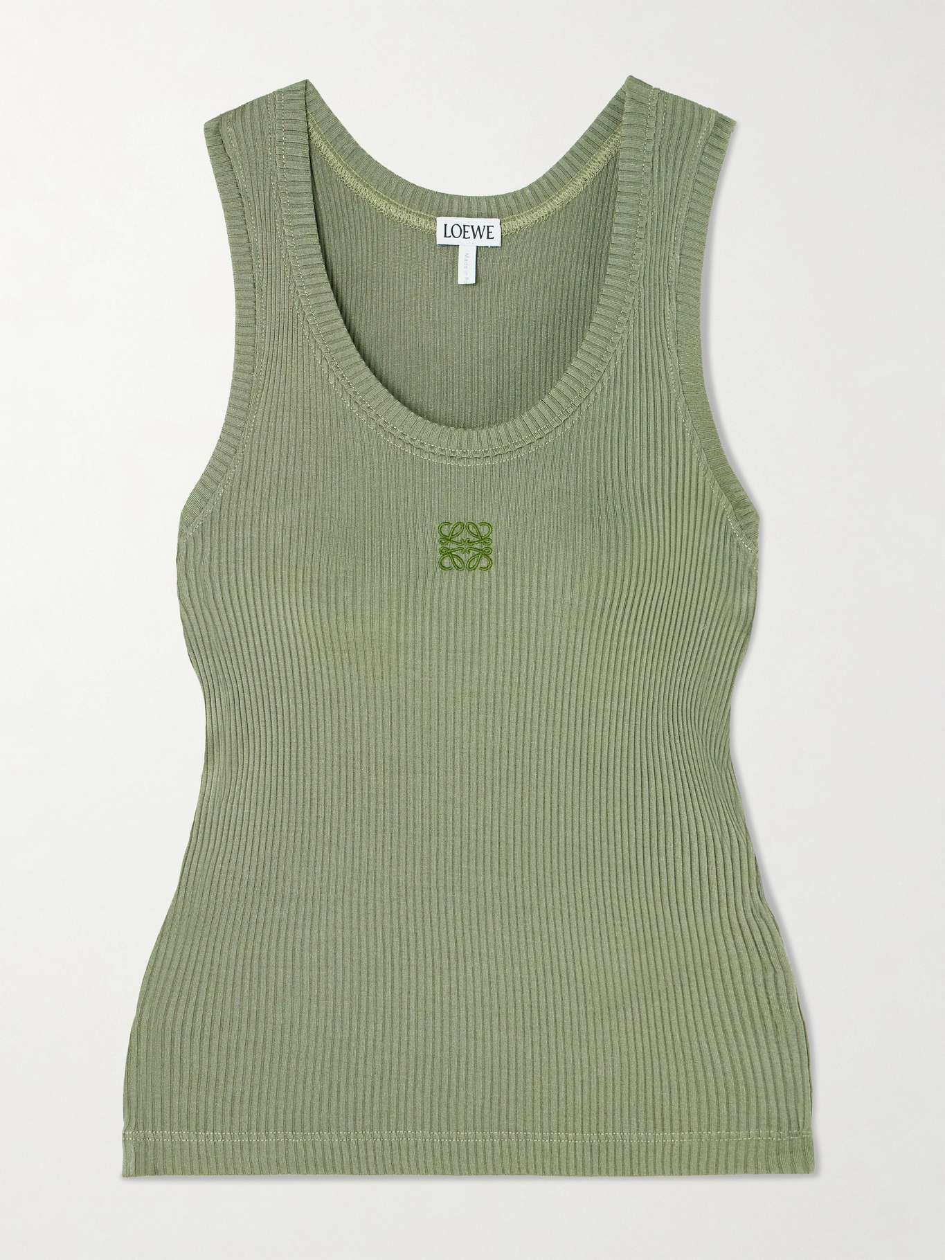 EDITORS'NOTES Loewe fans will instantly recognize the 'Anagram' logo embroidered on this tank. Made from sumptuous silk and ribbed to emphasize the close fit, it's the perfect foundation for so many different looks. SIZE & FIT Model measurements: - Fits true to size, take your normal size - Designed for a close fit - Lightweight, stretchy fabric - Model is 177cm/ 5'10" and is wearing a size XSmall - Bust: 85cm/ 33” - Waist: 66cm/ 26” - Hip: 92cm/ 36” DETAILS & CARE - Army-green silk-jersey - Slips on - 100% silk; embroidery: 100% polyester - Dry clean