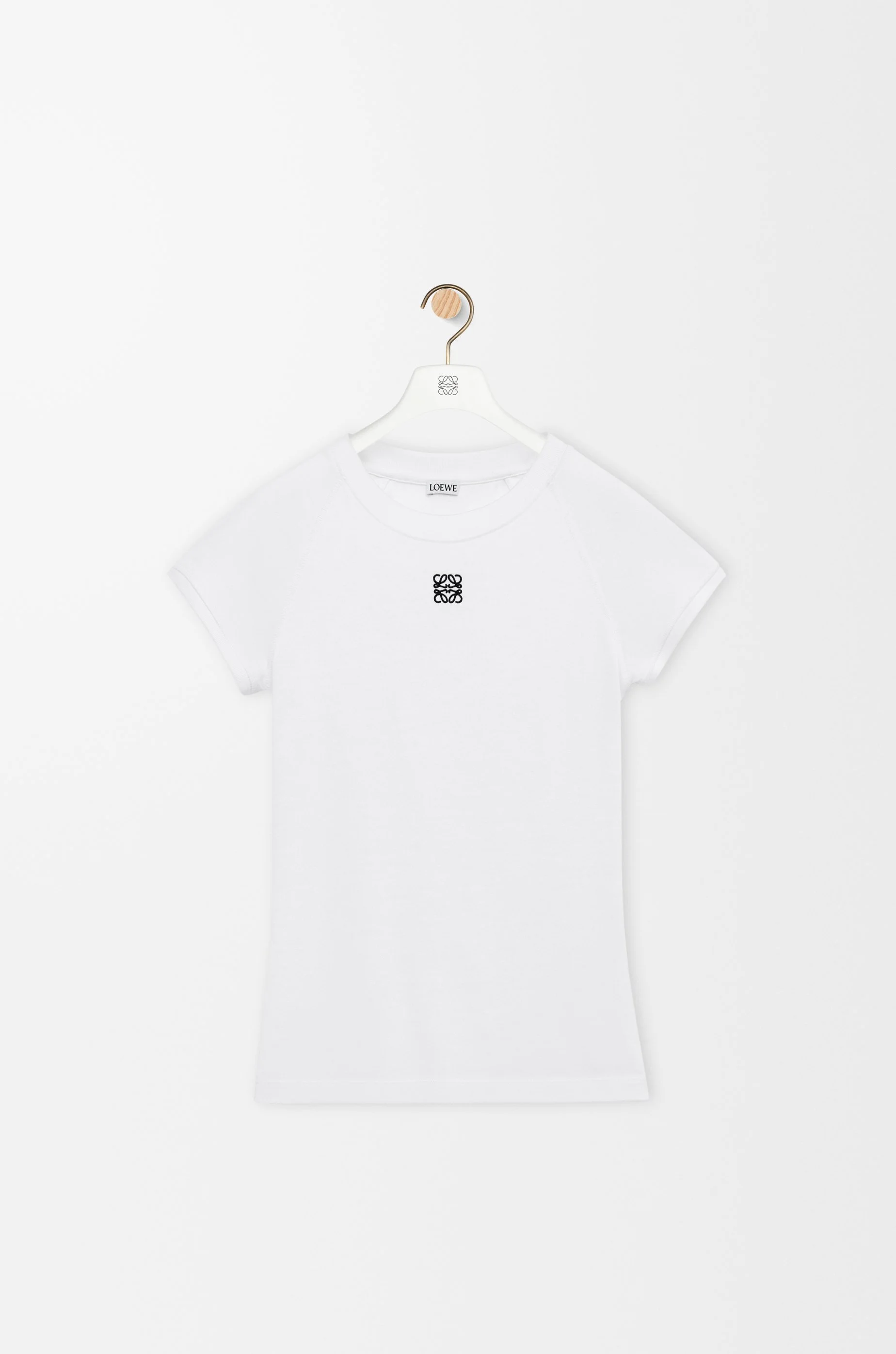 T-shirt in lightweight stretch cotton and viscose. - Small fit, regular length - Crew neck - Raglan sleeves - Anagram embroidery placed at the front Colour: White Main material: Cotton/viscose Weight: 0.17 kg Made in: Portugal Materials & care Main Material: 59% cotton 37% viscose 4% elastane