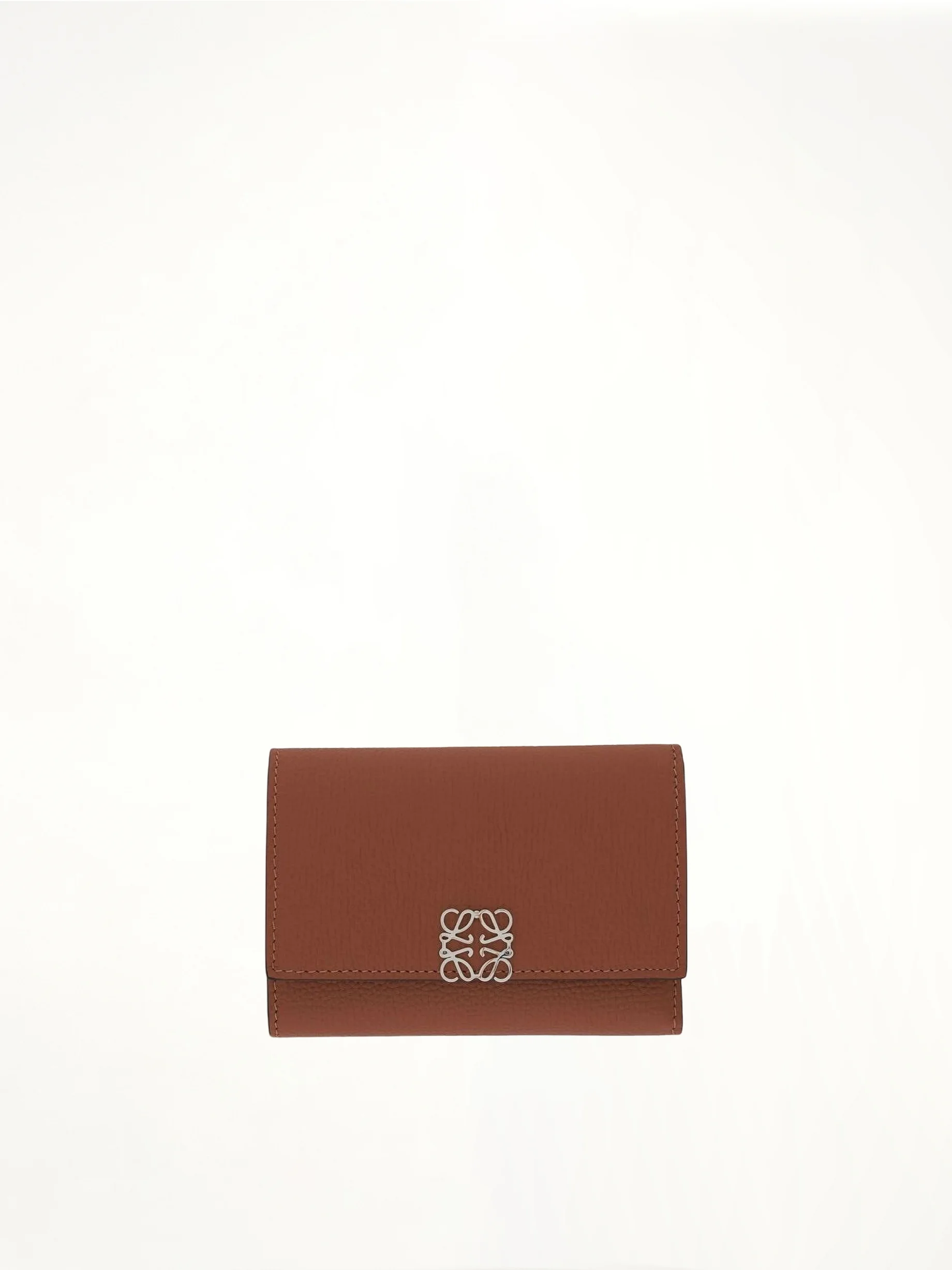 Anagram Small Vertical Wallet in Pebble Grain Calfskin in Tan