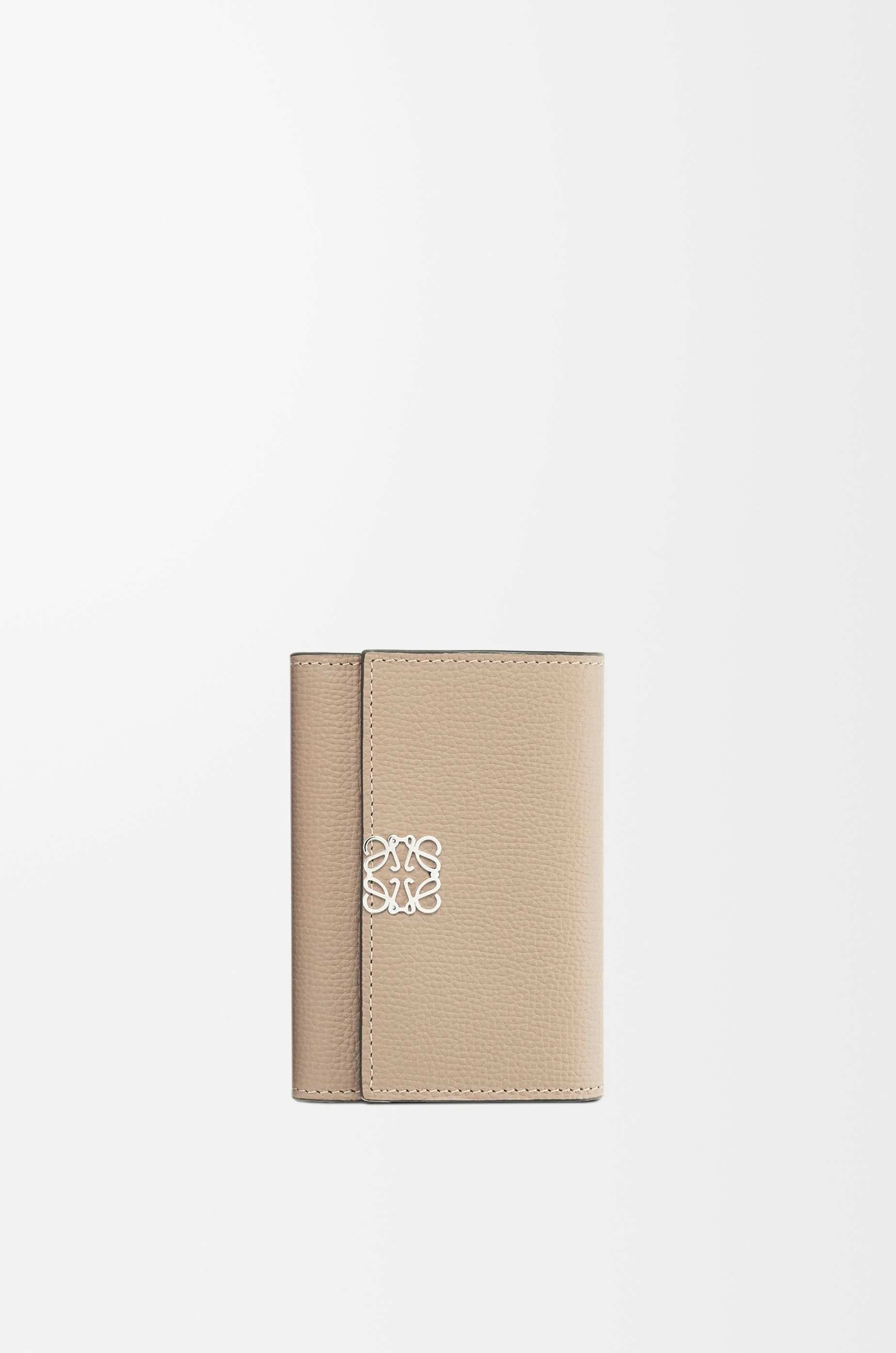 Wallet in pebble grained calfskin. - Six card slots, two small pockets, one large pocket - One zipped coin compartment - Snap button closure - Calfskin lining - Silver-finish metal Anagram Colour: Sand Metallic colour: Palladium Main material: Pebble Grain Calf Weight: 0.08 kg Height: 8.2 cm Width: 11.8 cm Depth: 3 cm Made in: Spain