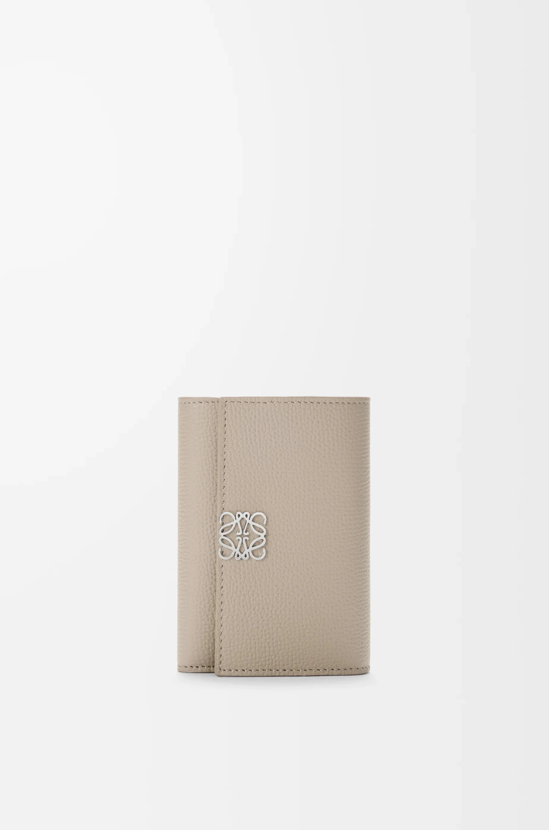 Wallet in pebble grained calfskin. - Six card slots, two small pockets, one large pocket - One zipped coin compartment - Snap button closure - Calfskin lining - Silver-finish metal Anagram Colour: Clay Metallic colour: Palladium Main material: Pebble Grain Calf Weight: 0.08 kg Height: 8.2 cm Width: 11.8 cm Depth: 3 cm Made in: Spain