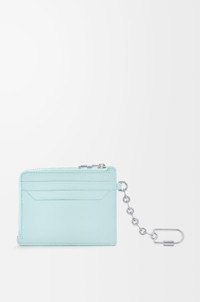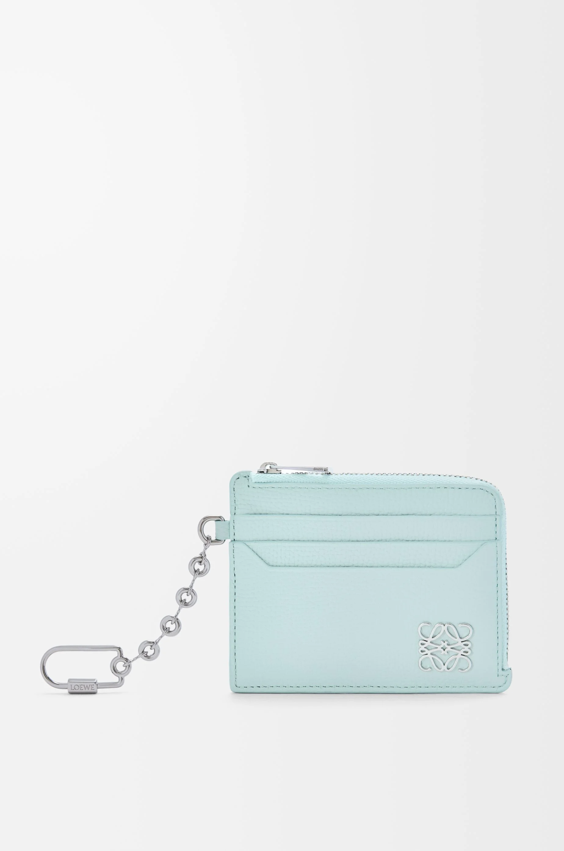 Coin cardholder in pebble grained calfskin featuring a donut chain with a screw fastening. - Six card slots, one zipped coin pocket - Zip closure - Calfskin lining - Silver-finish metal Anagram Colour: Frozen Metallic colour: Palladium Main material: Pebble Grain Calf Weight: 0.06 kg Height: 8.8 cm Width: 11 cm Depth: 1 cm Made in: Spain