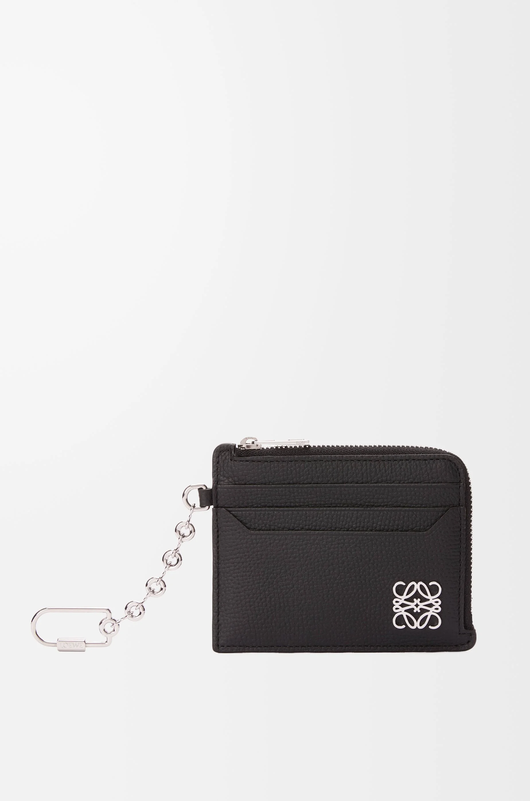 Coin cardholder in pebble grained calfskin featuring a donut chain with a screw fastening. - Six card slots, one zipped coin pocket - Zip closure - Calfskin lining - Silver-finish metal Anagram Details - Colour : Black - Metallic colour : Palladium - Main material : Pebble Grain Calf - Weight : 0.06 kg - Height (cm) : 8.8 - Width (cm) : 11 - Depth (cm) : 1 - Height (inch) : 3.5 - Width (inch) : 4.3 - Depth (inch) : 0.4 - Model ID : C821SQLX03 - CIL : - 0011208485 - Made in : Spain