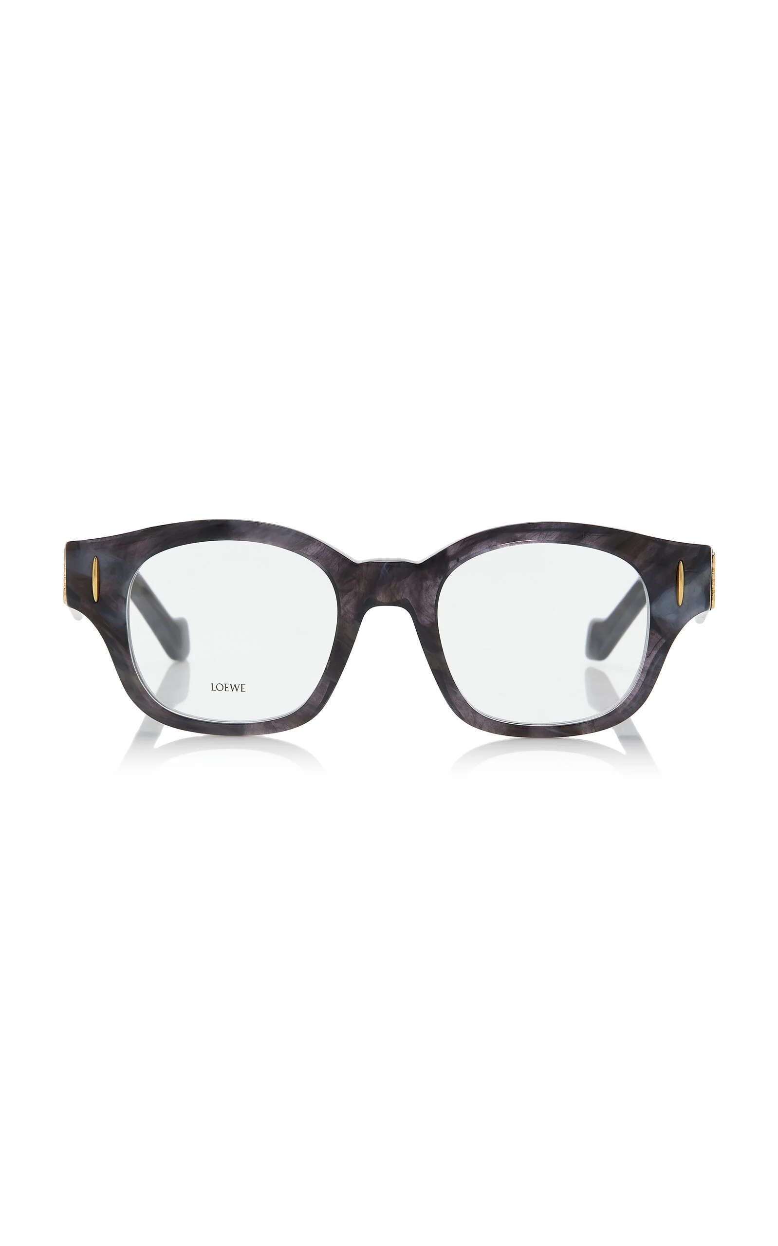 Loewe's eyewear is defined by their contemporary silhouettes. Made in Italy, the vintage-inspired frames are crafted from the highest quality materials and add effortless glamour to any look. This pair has rounded square frames made from marbled acetate with the house's anagram at the temples. PRODUCT DETAILS - Composition: acetate - Designer color: Black Horn - Made in Italy