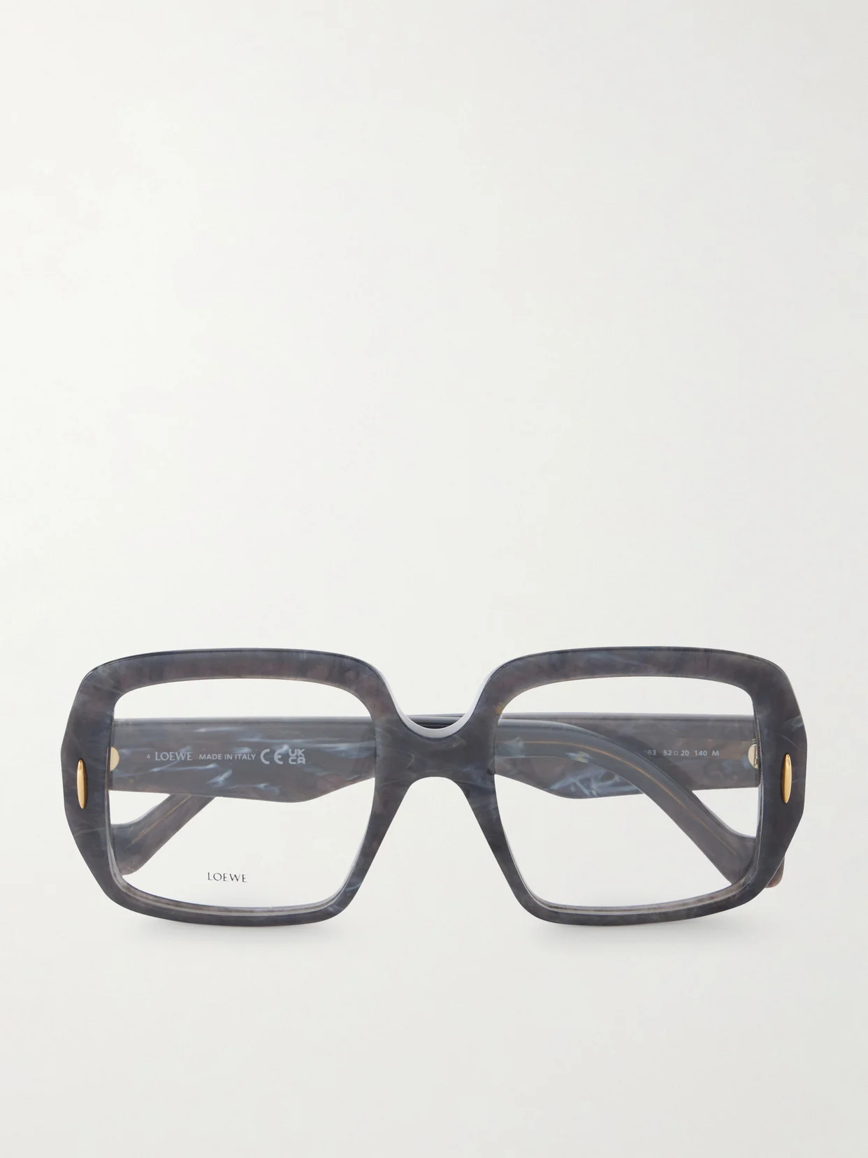 Make a bold style statement with LOEWE Eyewear's 'Anagram' glasses. They are easily recognizable thanks to the gold-tone emblem on the temples. The frame is made from marbled gray acetate, and can be used for prescription lenses.